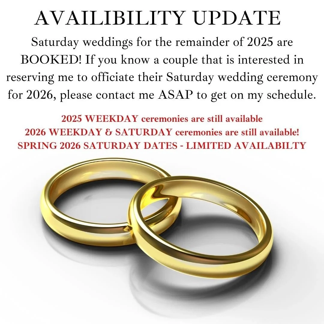 Since I took office on January 1st, 2021, I’ve officiated over 150 ceremonies! I can’t wait to be a part of your story!